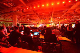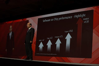 a bunch of people gather 😉 blogger and press area the room the stage mr Toyoki from fujitsu America Andy Mendelsohn come on stage to outline the joint effort on Atthena chip On October 3, 2012 By phil